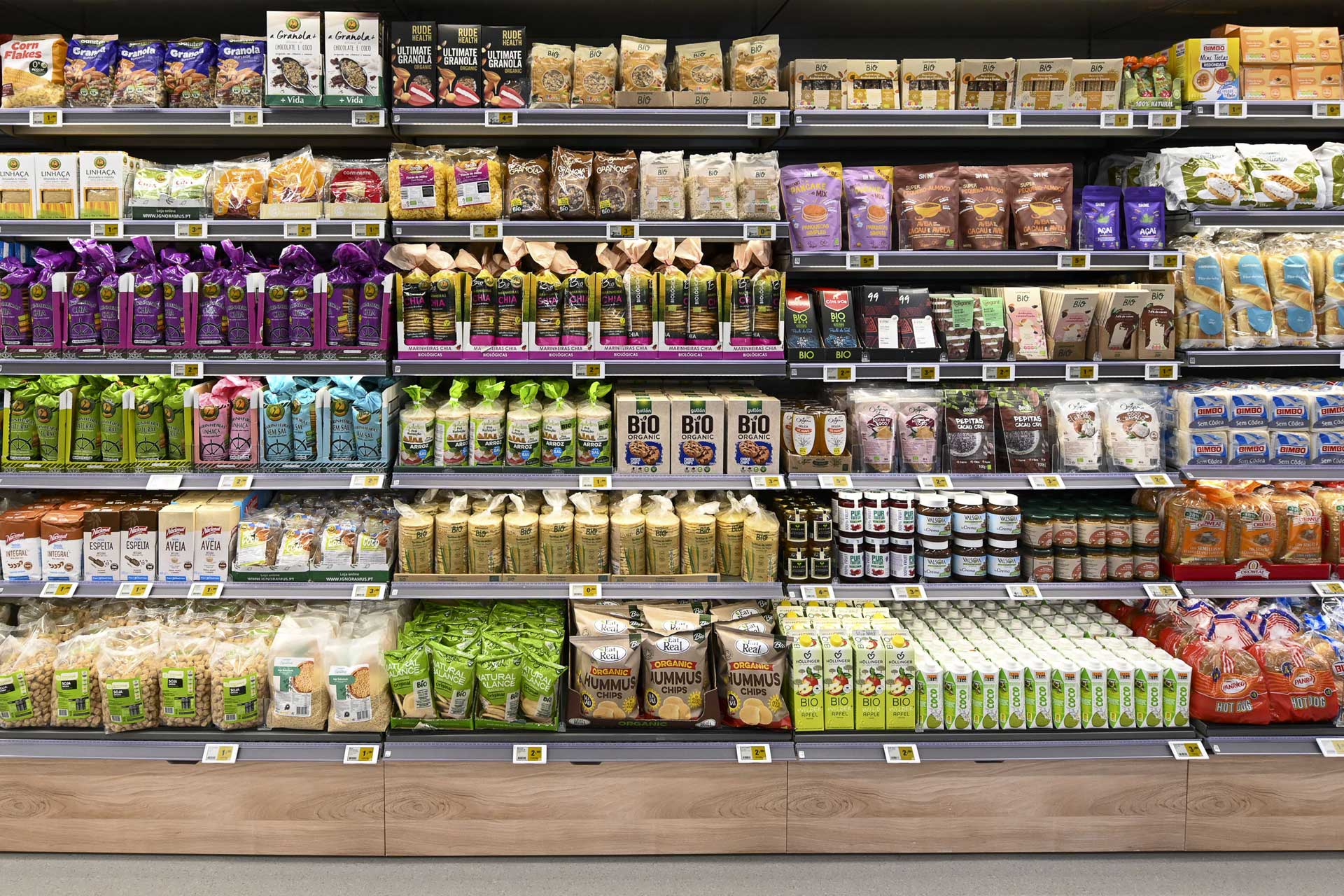 Os sacos reutilizáveis de frutas e legumes encontram-se junto aos produtos frescos, nas bancadas de frutas e legumes. Pode escolher entre os de algodão, que custam 2€ e podem carregar até 8 kg de frutas e legumes ou os de poliéster, que suportam até 5kg de produtos e custam 0.15€ (polietileno) ou 0.25€ (poliéster). Todos estes sacos são inovadores e feitos com material lavável, podendo ser facilmente reutilizados.